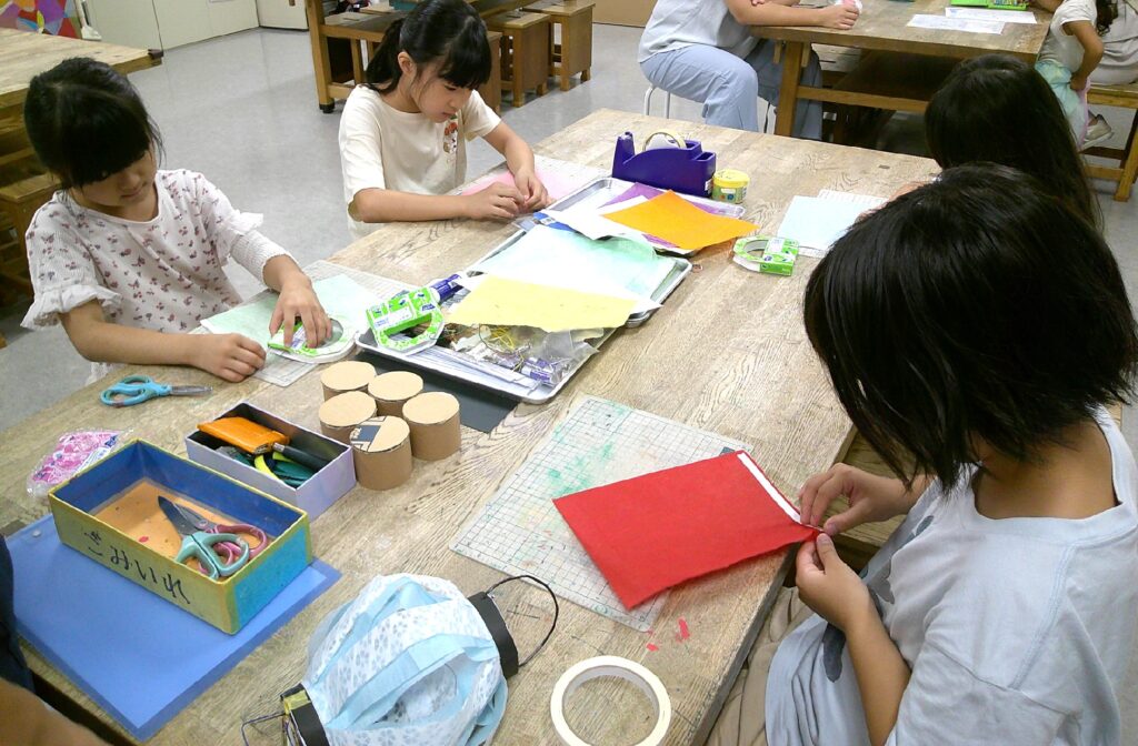 本番前に、浴衣に合わせた髪飾りをみんなでつくりました。