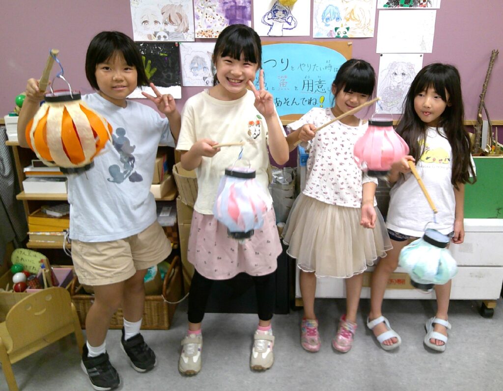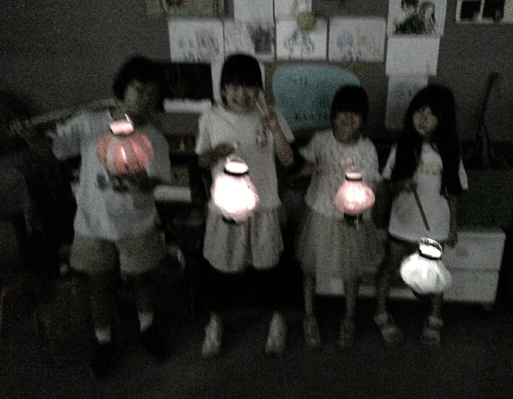 和紙と豆電球を組み合わせて、暗闇の中でも光る提灯をつくりました!