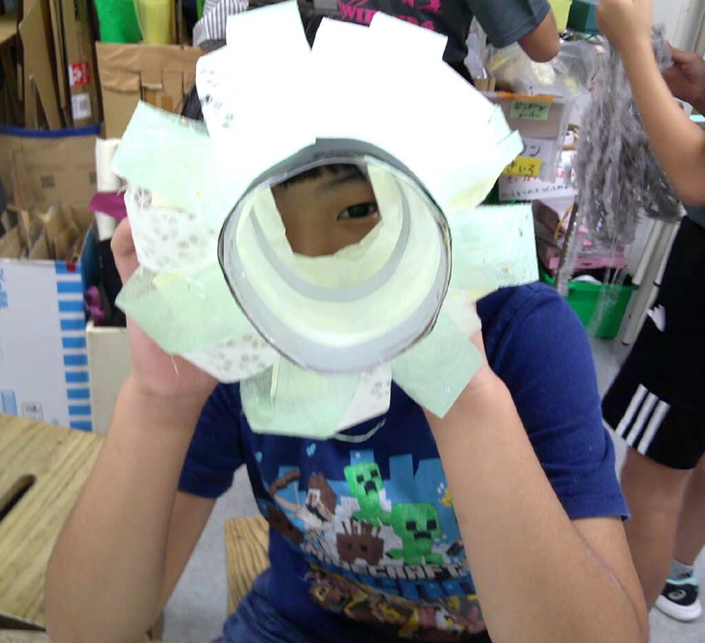 星空になるのをイメージしながら葉を組み合わせて、投影機を作りました。