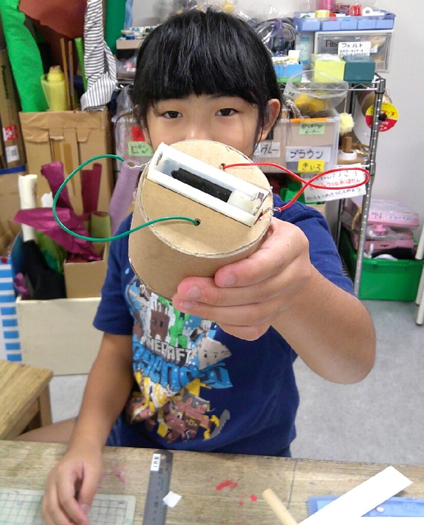 電池ソケットと豆電球の導線をつなぎ合わせて、スイッチオン!