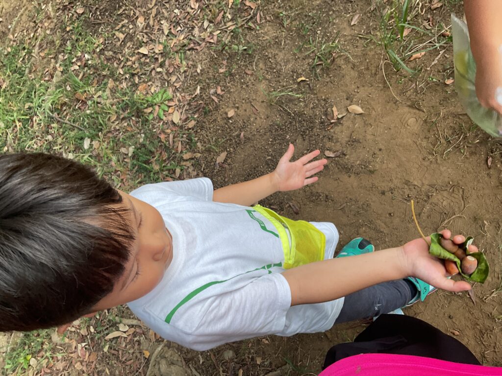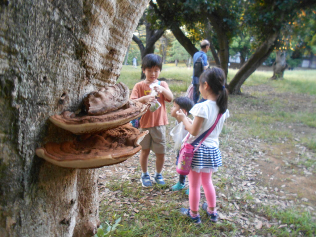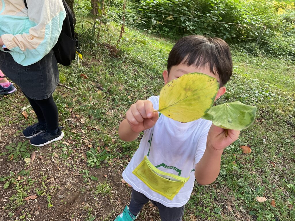 キノコ探しも生き物探しも葉っぱあそびもこどもたちからのリクエストです。