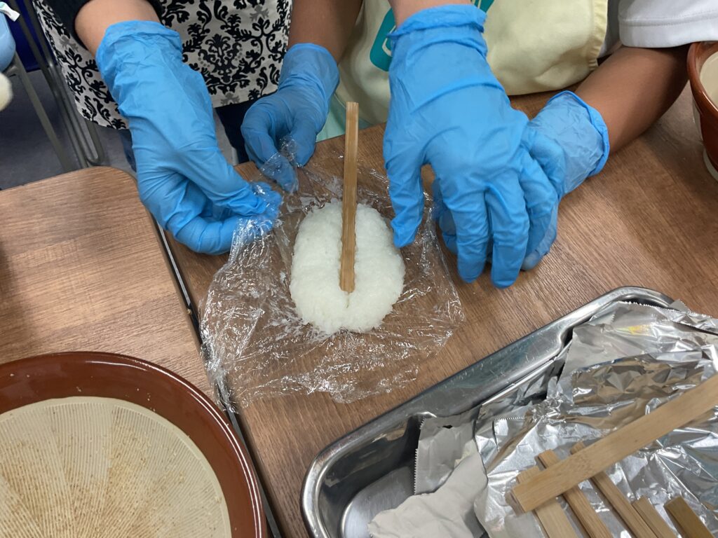 お米はラップにくるんで型にはめたり手で五平餅の形に整えればスタンバイOK!