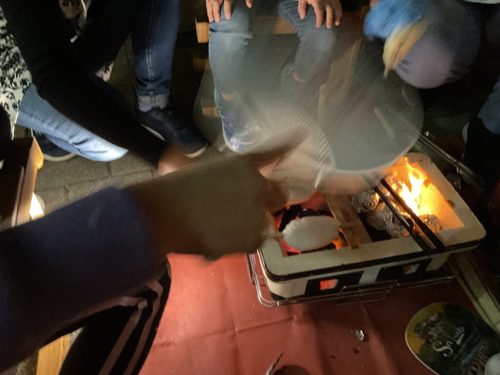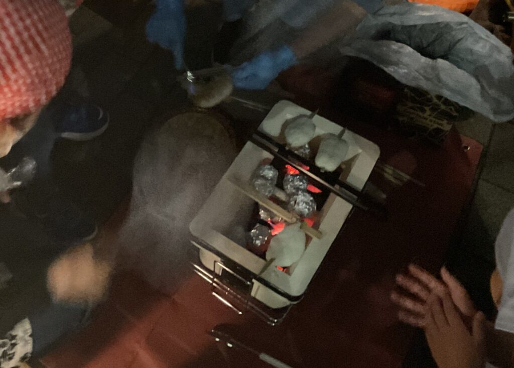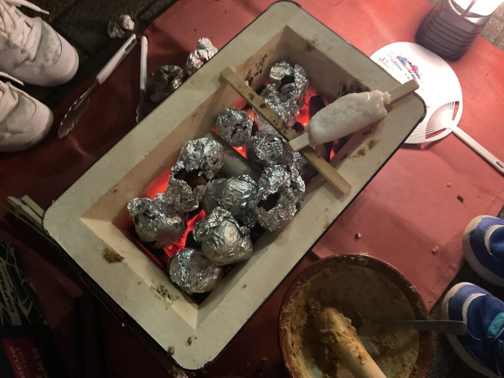 たまに炭の中に五平餅が落ちたりとハプニングもありましたがそれもまた良し。みんなで助け合って無事に全員分が焼き上がりました。