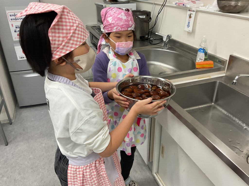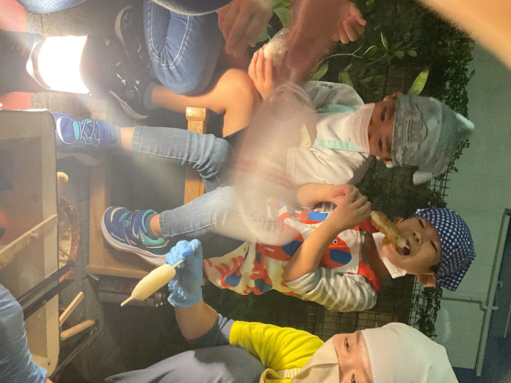 はじめは「栗はそんなに好きじゃない」「栗はたべなくていいや」というお子さんもちらほらでしたが、いざ口にしてると「おいしい!」「もう1個食べたい!」と絶賛して全員が2個ずつ食べました。