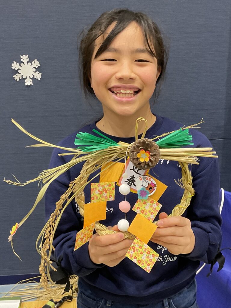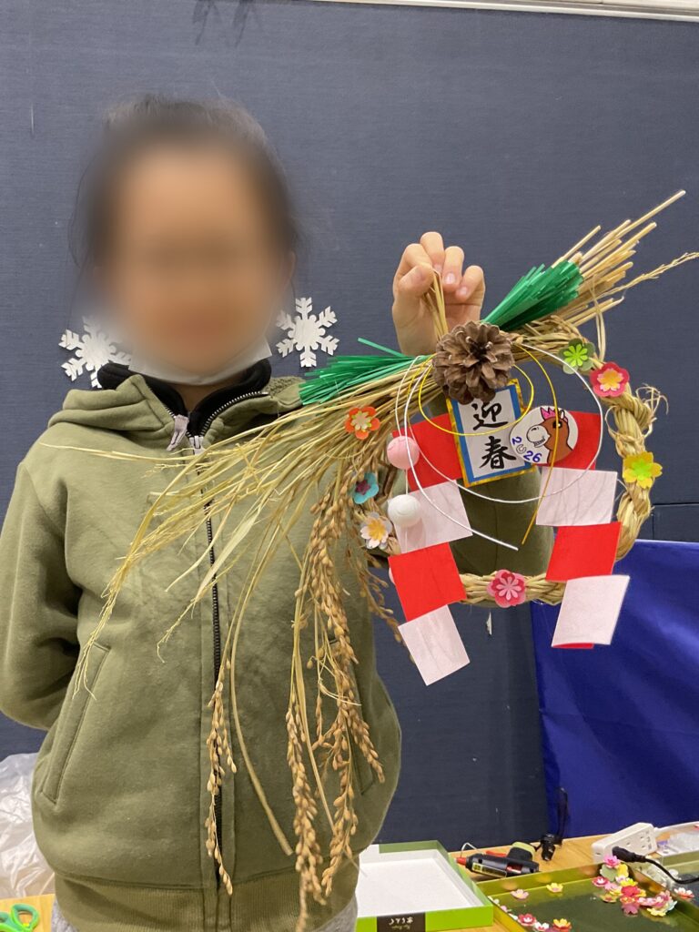 こどもたちにしめ飾りに込められた願いや意味のお話をすると、真剣に頷きながら耳を傾けてくれました。