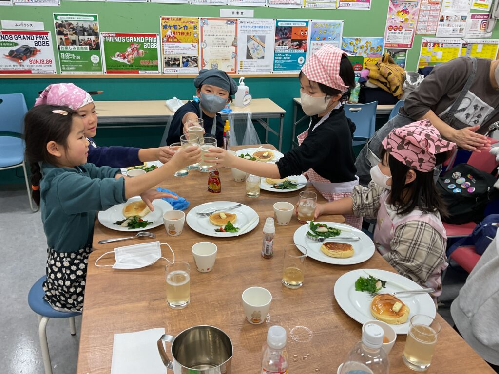 しっかりと振り返りつつ、こどもたちもお家の方もフレンズフェスティバルで大活躍してくれたので、そのお疲れ様会も兼ねて開催し、前回仕込んだコーラとぬか漬けを添えてホットケーキを食べました。
