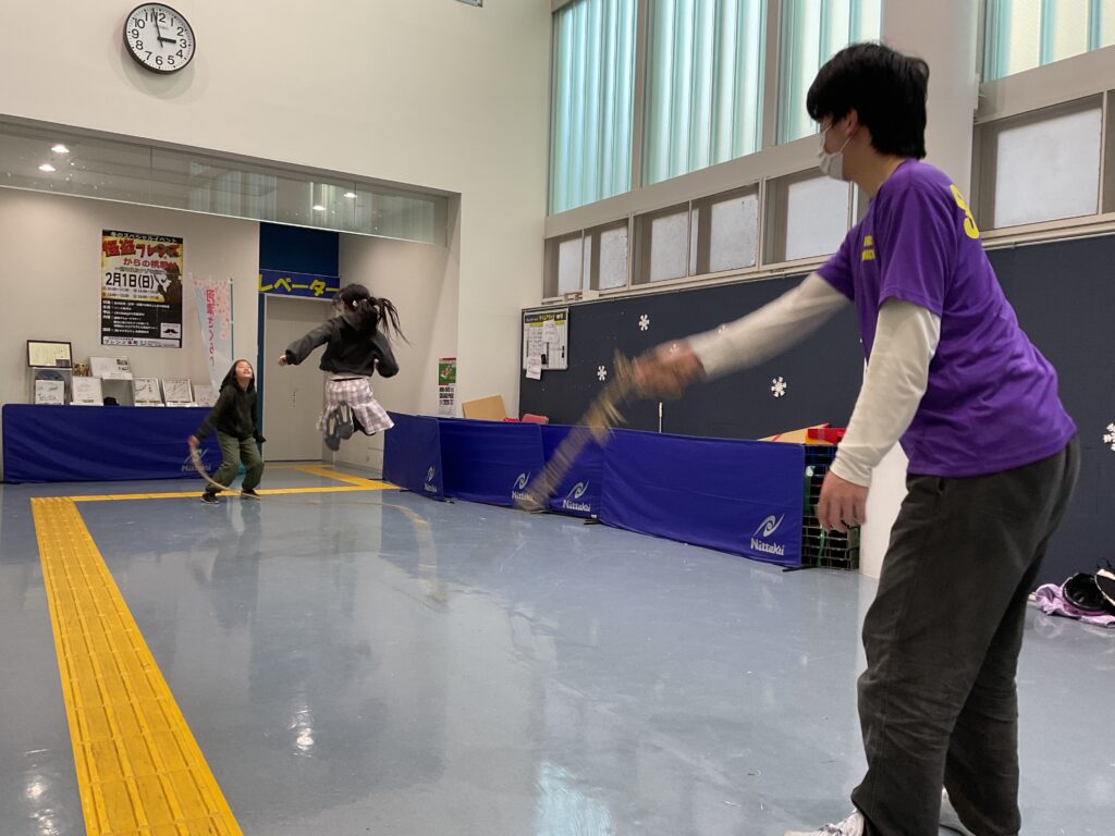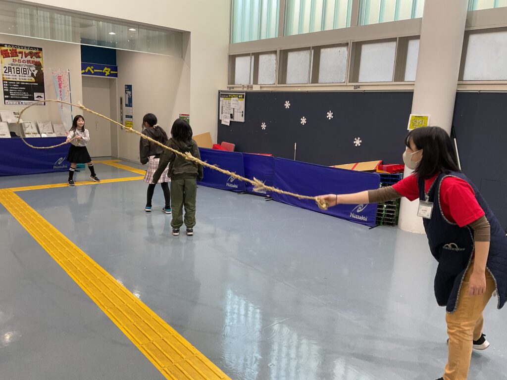 完成した大繩で2時間ほど思う存分あそびました。最初から最後まで跳んでいた人たちもいて、すごい体力!!