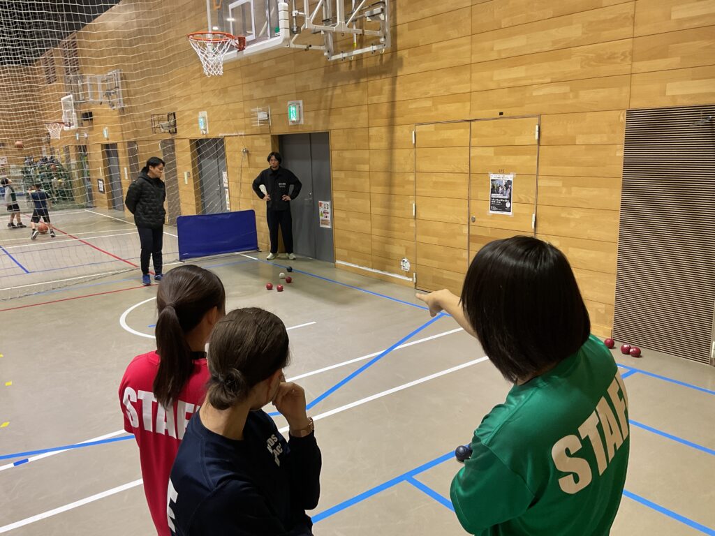 試合前に交流の時間をつくりみんなで練習を行いました。ルールが分からない人がいたら、丁寧に教えてあげる優しいチームがいて大変助かりました!