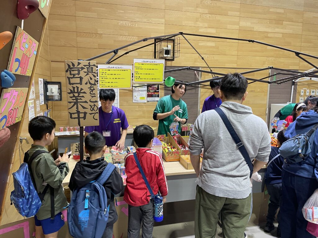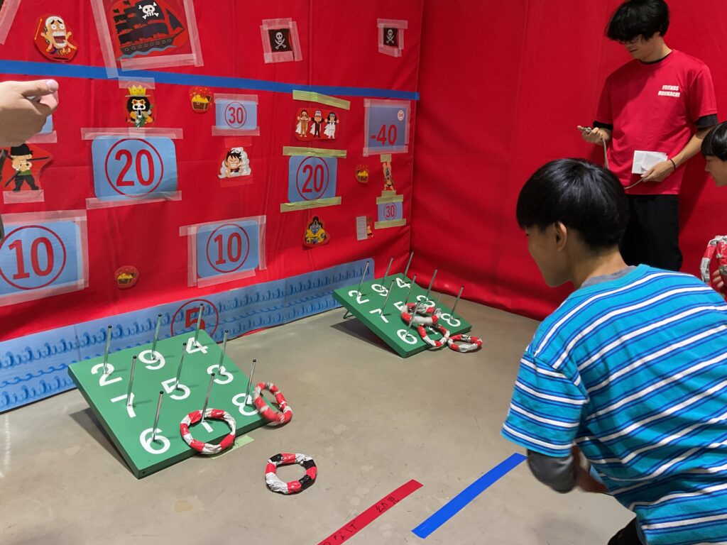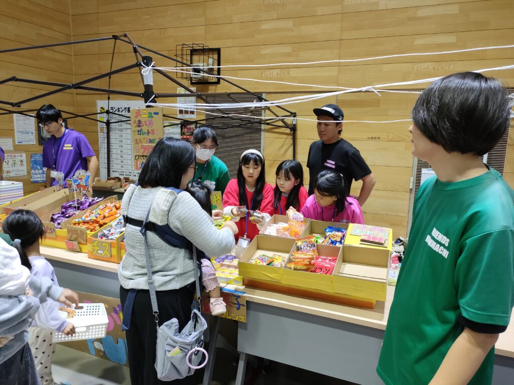 「おばけやしきは怖くて嫌だ!」というこども達には「屋台スタンプラリー」を用意しました!定番の「射的」。みんな大好き「コリントゲーム」。そして、こども実行委員会にて企画、準備してきた「フレンズギネスに挑戦!」。各ゲームを楽しんだ後は、屋上にてアイスをプレゼントしました!