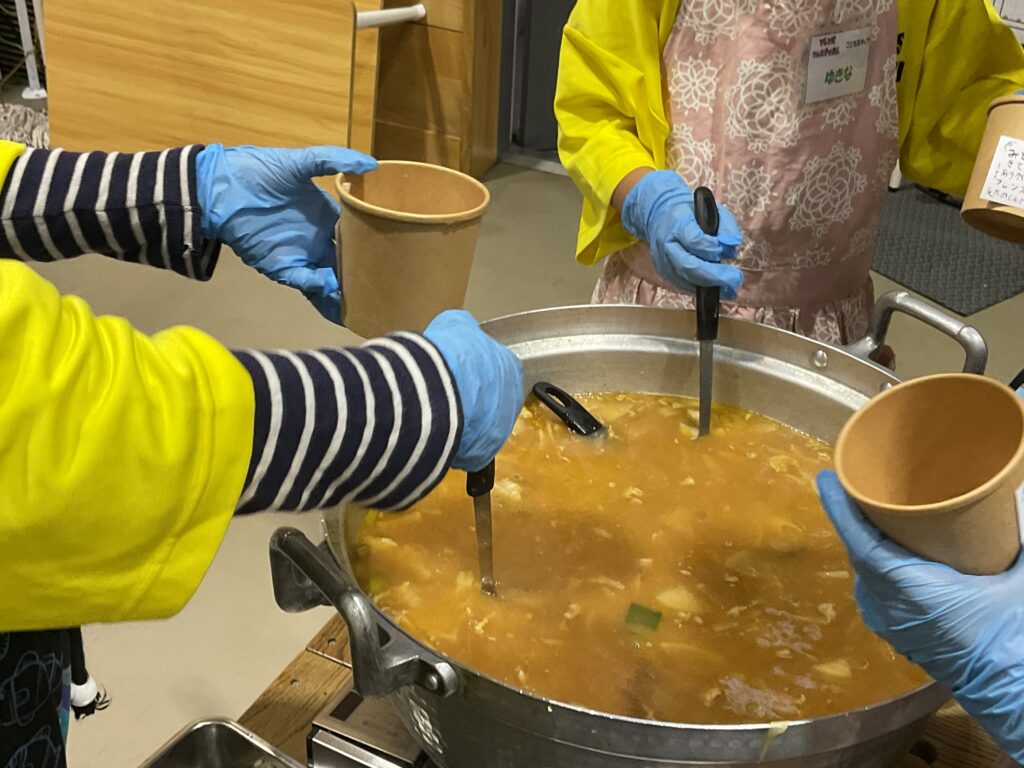 みんなで協力してできあがった焼きそばとスープを盛り付けたら、いただきます!みんなでつくり、みんなで食べる焼きそばは格別です!