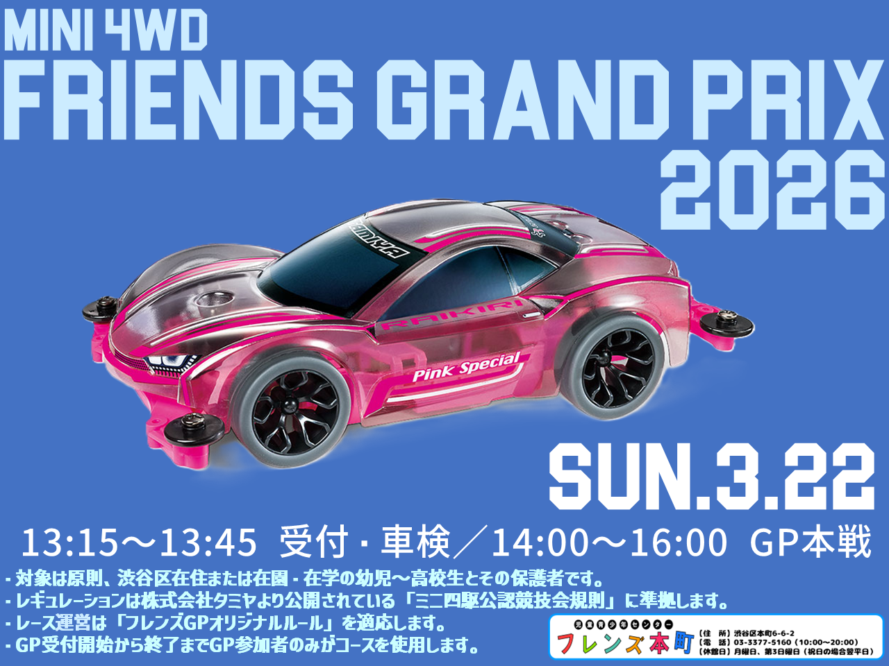 渋谷区/児童青少年センター フレンズ本町 > イベント > 2026年2月19日  「フレンズGP」~mini 4WD~ 🆕