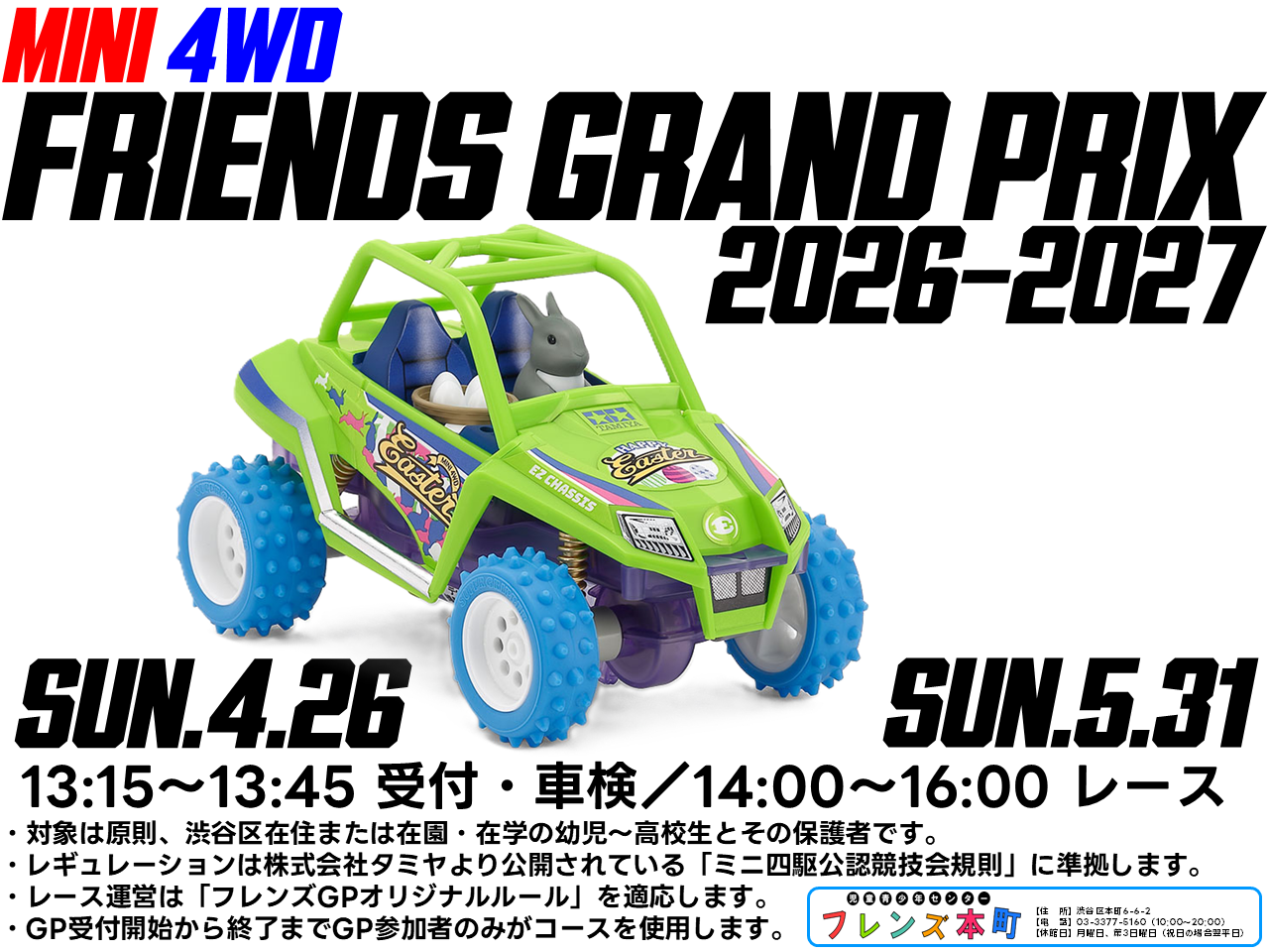 お待たせいたしました!タミヤ公式レギュレーションにて開催します。