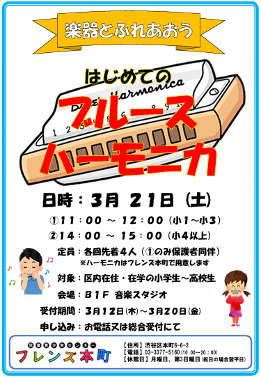 > 2026年3月11日 楽器とふれあおう【はじめてのブルースハーモニカ】
