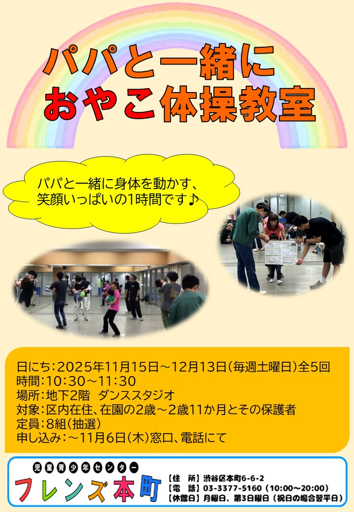 渋谷区/児童青少年センター フレンズ本町 > 教室 > 2025年9月1日  パパと一緒におやこ体操教室