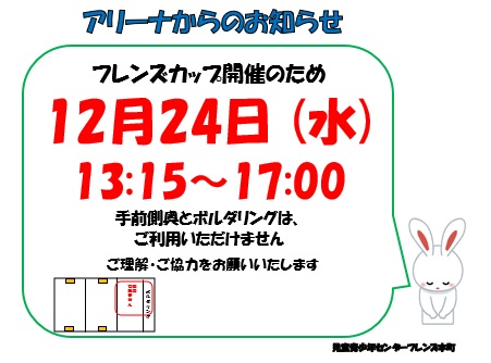 渋谷区/児童青少年センター フレンズ本町 > お知らせ > 12/24 アリーナからのお知らせ