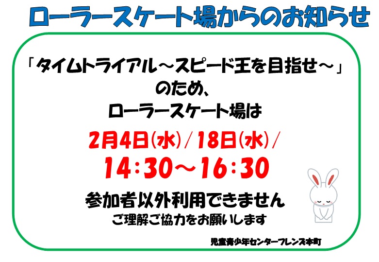 > 2/4、2/18 ローラースケート場からのお知らせ