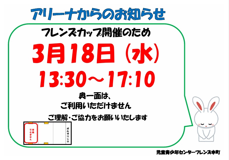 > 3/18 アリーナからのお知らせ