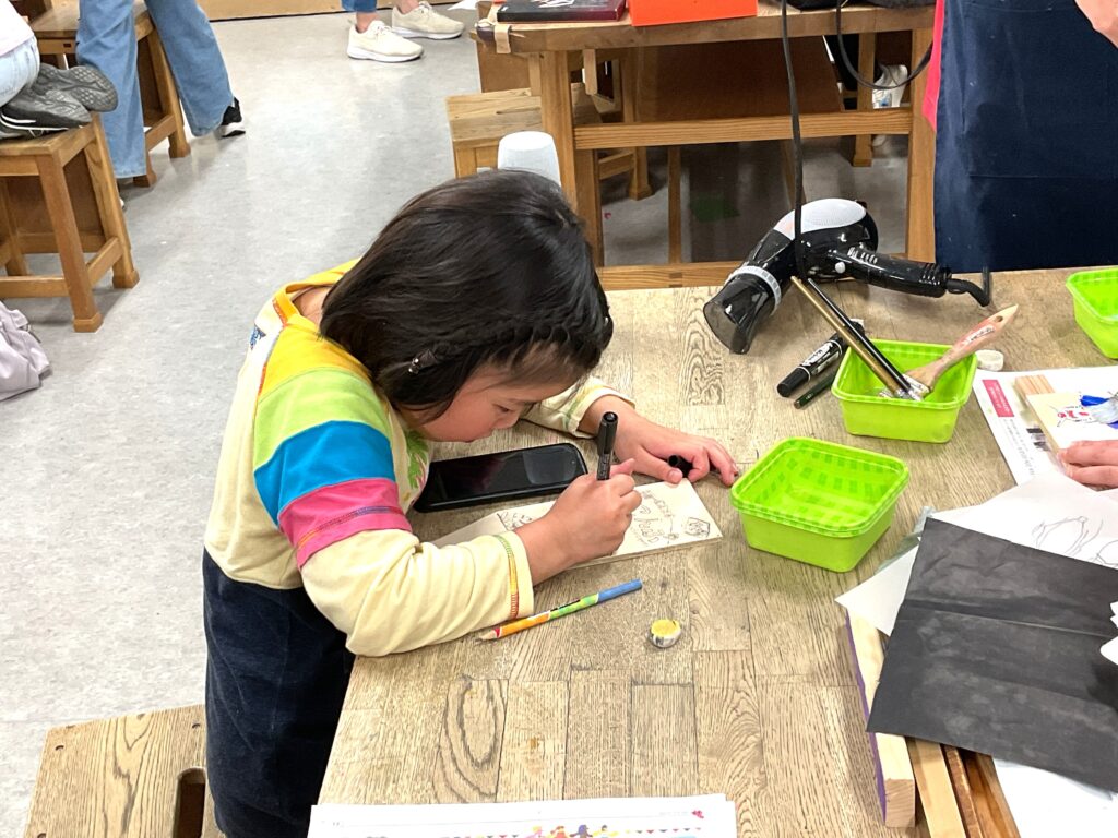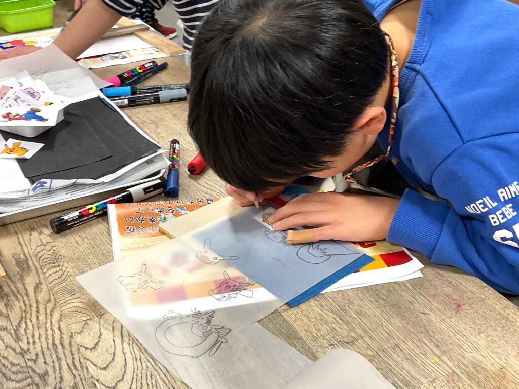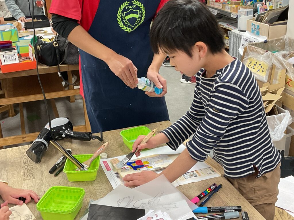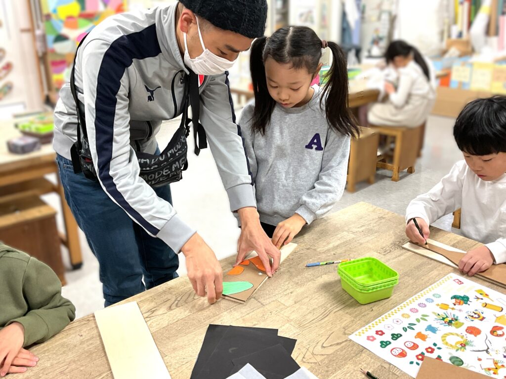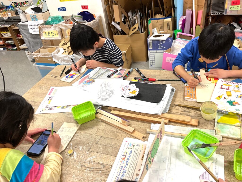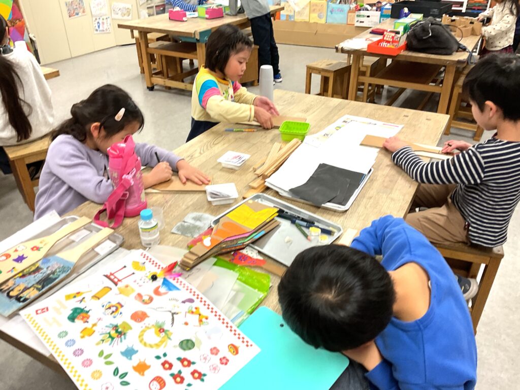 切り出しが終わったら色塗りに。お正月といえばこれ!のイラストを入れたり、好きなキャラクターを全面に描いたりと、デザインも凝って丁寧に作っていました。