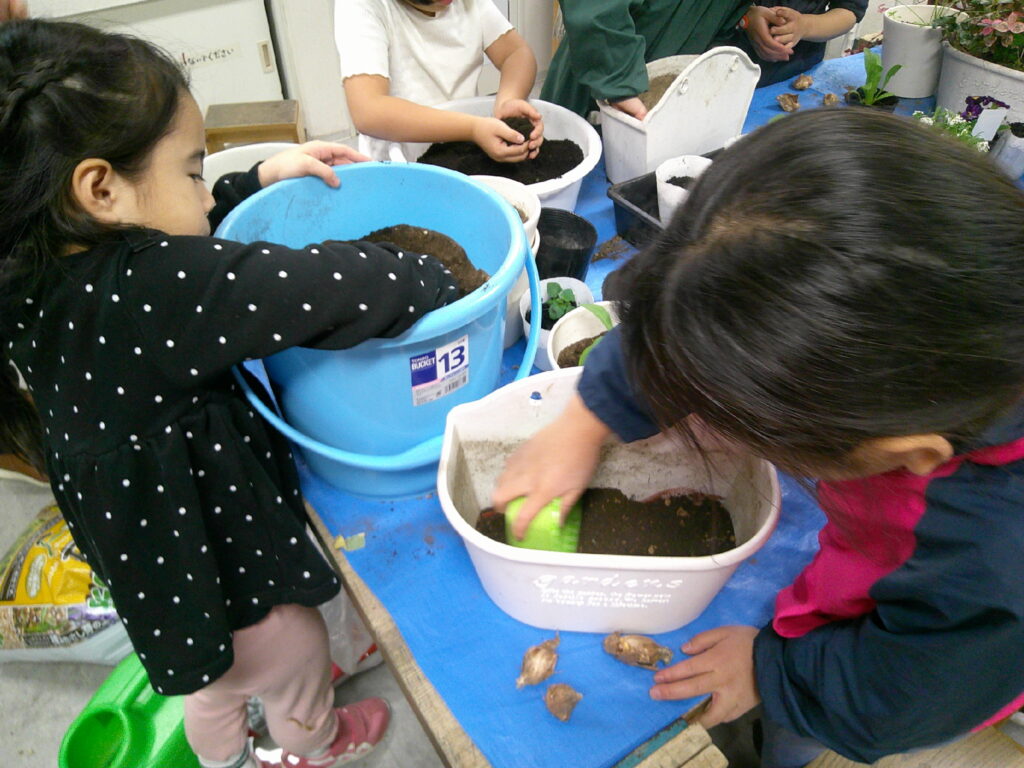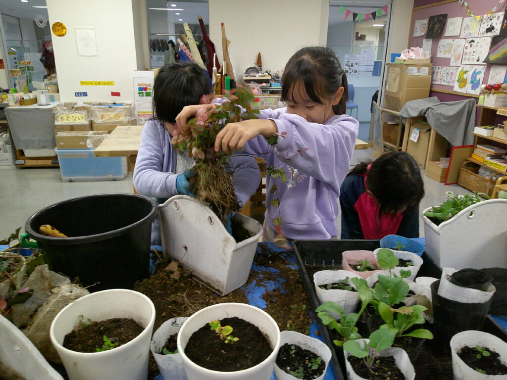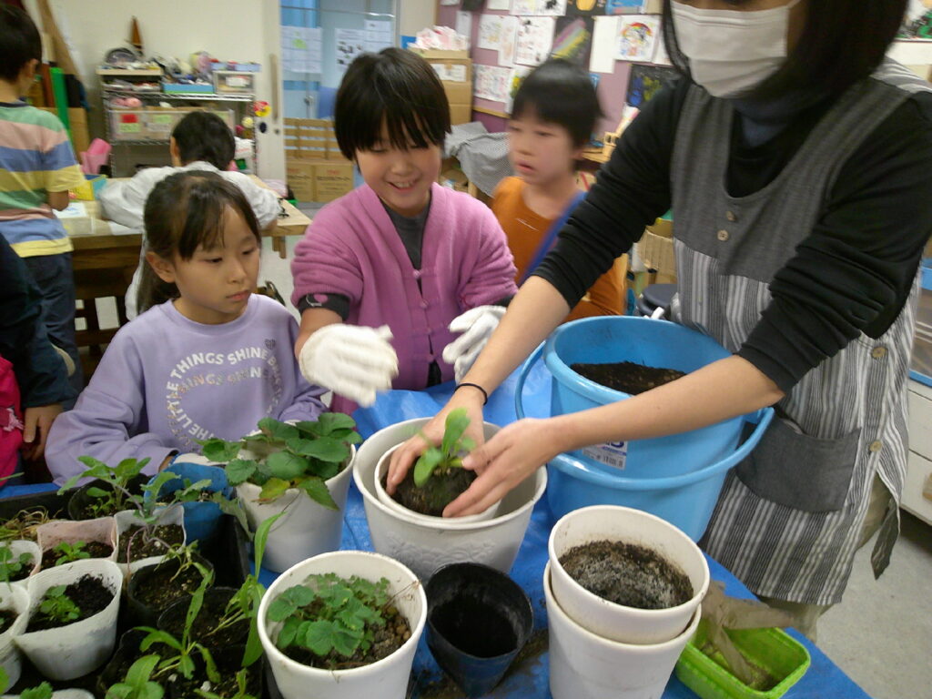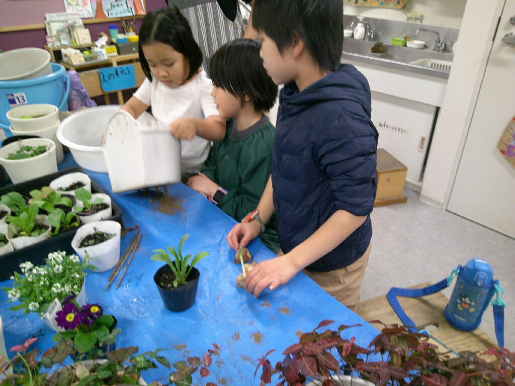 こどもたちが愛情込めてとても上手に植えたので、きっと植物たちもすくすく生長できるでしょう。植物の生長の応援が冬の楽しみになりそうですね。