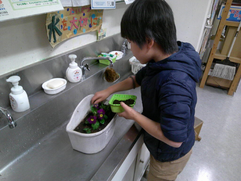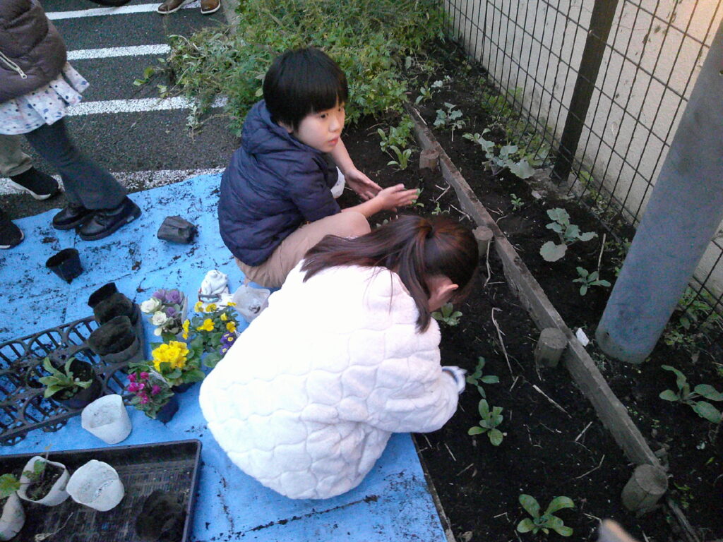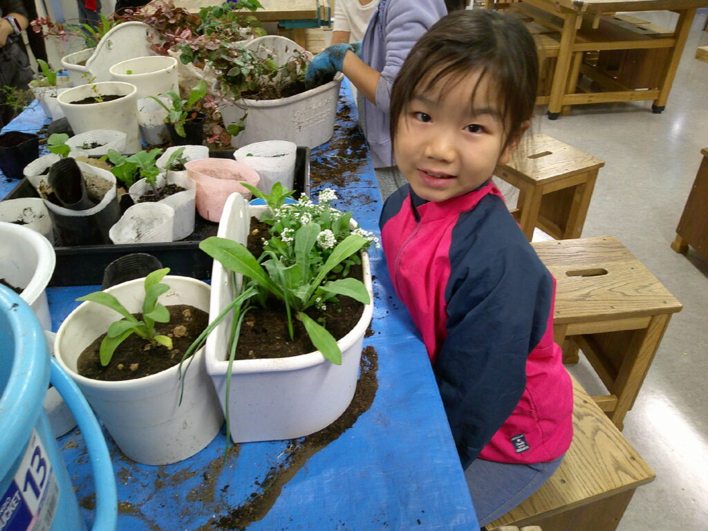 と楽しみながら、「元気に育ってほしい」「はやくお花がみたいな♪」の気持ちでこちらも丁寧にきれいに植えつけていました。