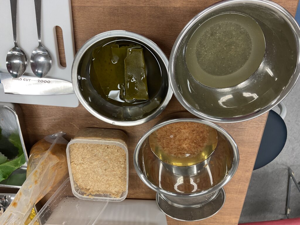 出汁の味見では、昆布は「あんまりおいしくない…」とリアクション。ごくごく飲みたい美味しさとは違いますが、うまみ成分がお料理をおいしくしてくれることをこの後しっかり実感してくれました。