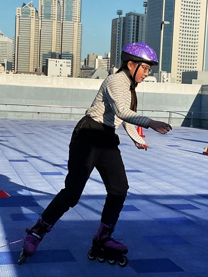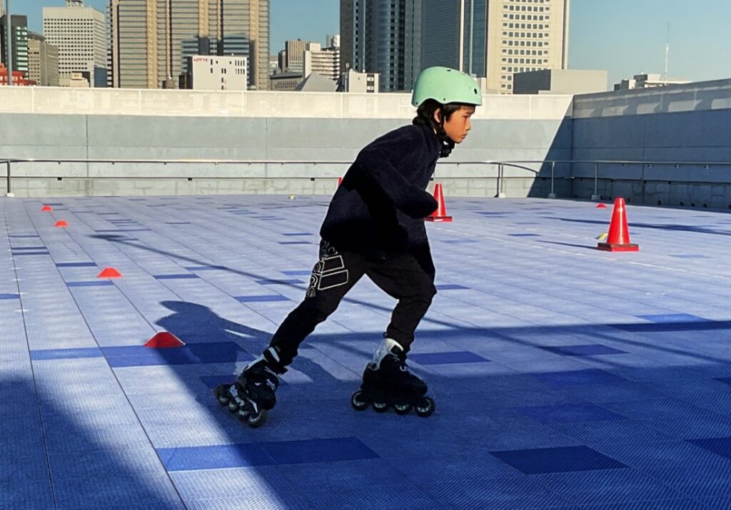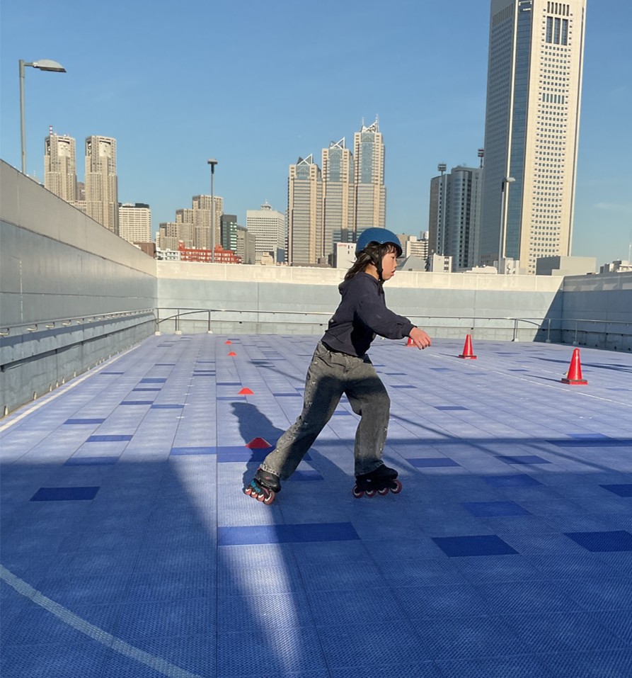 最初は2周の計測をします。ウォーミングアップの時間では自分の滑り方やスケーティングの感触を最終確認していました。