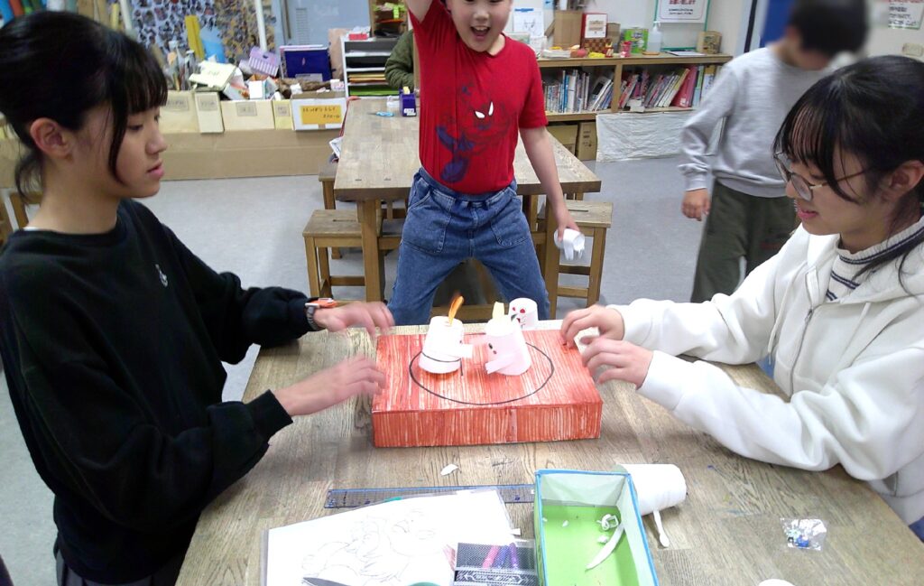 アイデアBOXの企画から、紙コップを使ってトントン戦う紙コップずもう。