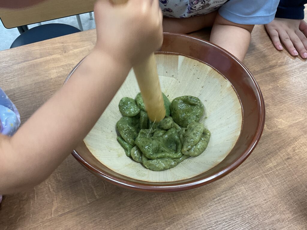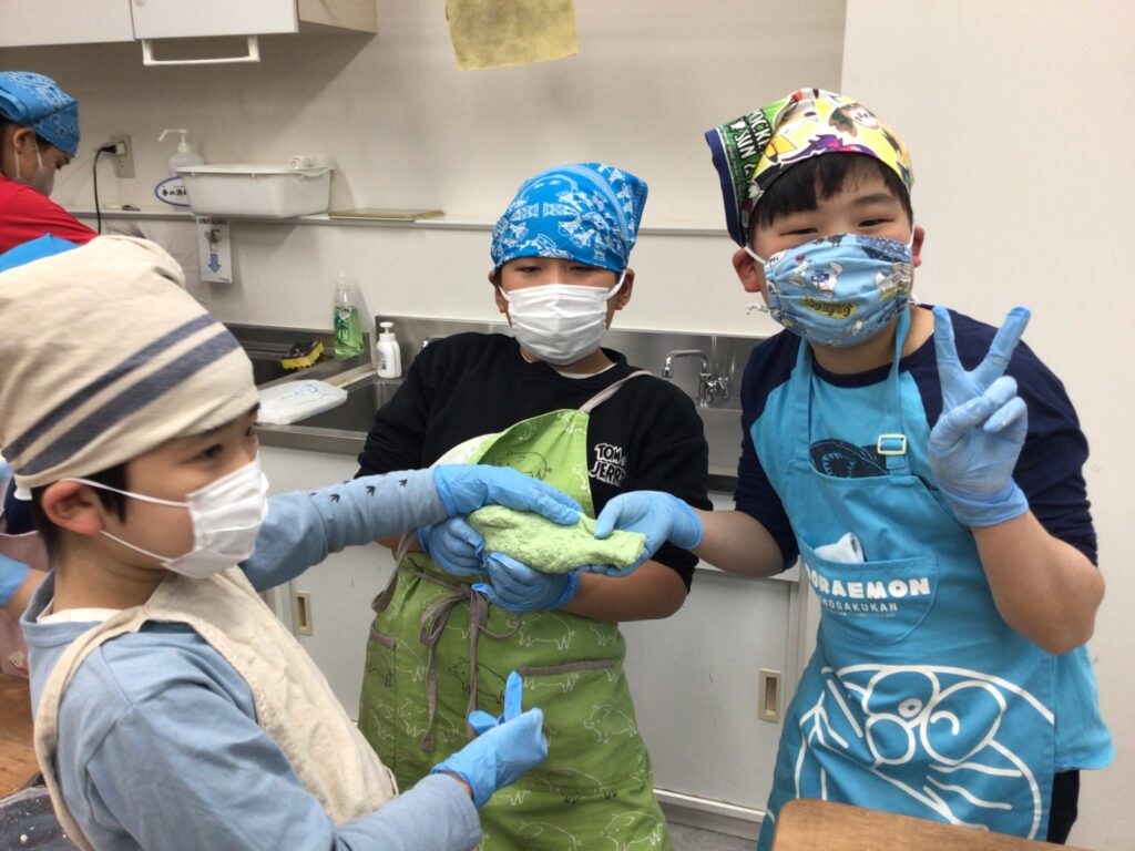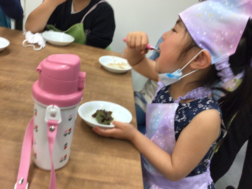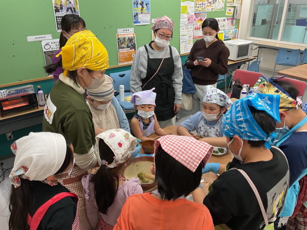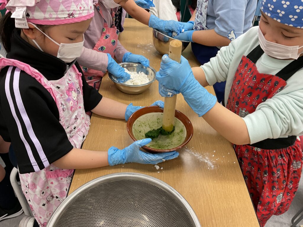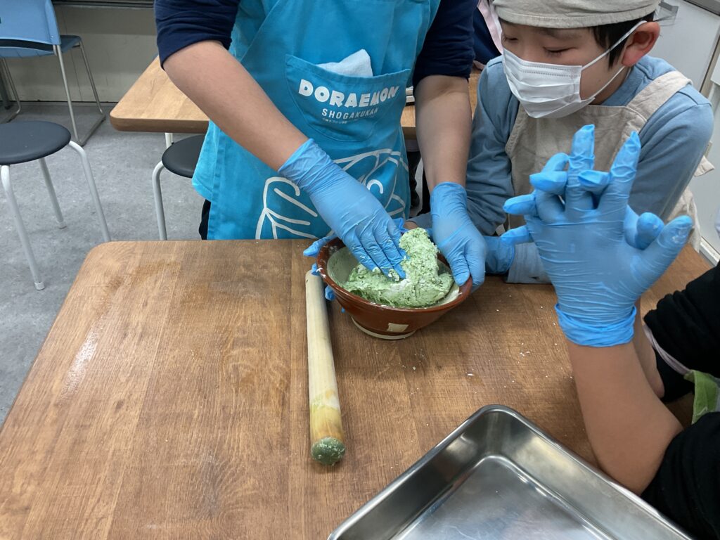 エプロンに包んでのヨモギ摘みや、調理の工程、食べる準備と、全ての工程をみんなで楽しんで挑戦していました。調理の工程そのものが楽しくて好きで参加をしている人もいましたよ。