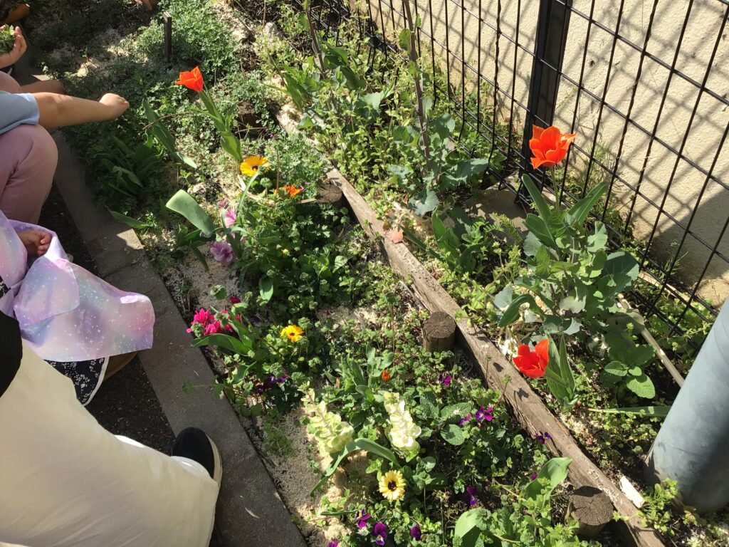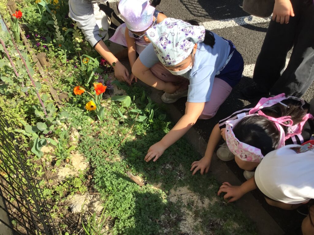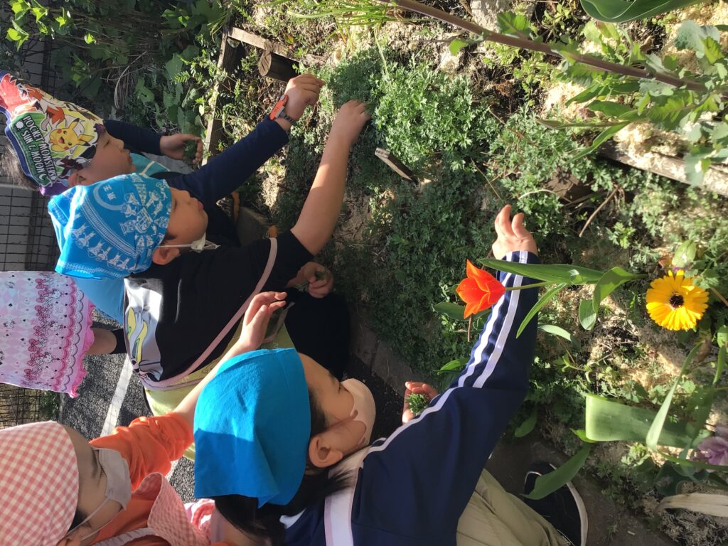 素晴らしいあんこの出来栄えと、春の花壇で出たてのやわらかいヨモギを摘み、市販にない特別な春の味をみんなでおいしく味わうことができました!